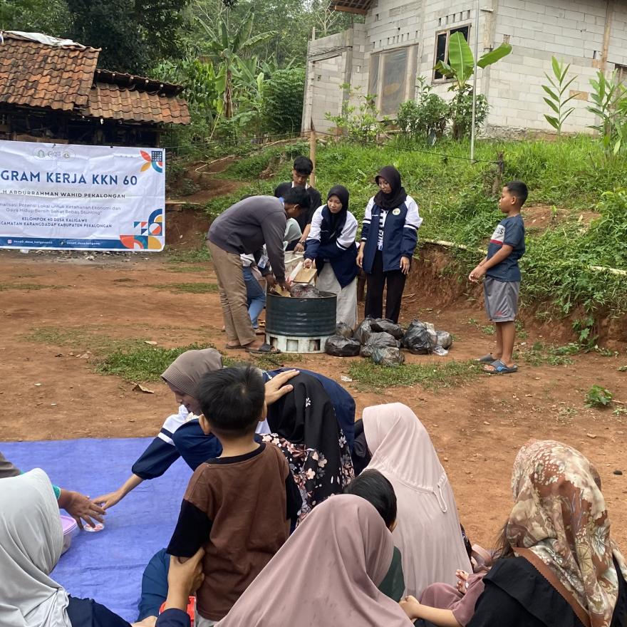 Setelah edukasi PSN, mahasiswa melanjutkan dengan mendemontrasikan pengelolaan sampah organik dan non-organik. Sampah organik dimulai dengan metode pemanfaatan galon bekas yang diisi sampah organik seperti sisa makanan dan daun, kemudian disiram air bekas cucian beras. Air tirisan yang dihasilkan dari proses ini dapat digunakan sebagai pupuk cair alami.