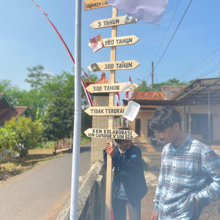 Tak hanya teori, tim KKN juga mengajak siswa berdiskusi dan menjawab pertanyaan interaktif. Pada akhir acara, dilakukan pemasangan papan edukasi sampah di lingkungan sekolah. Papan ini memuat informasi tentang kategori sampah berdasarkan jangkauan waktu terurainya, sebagai pengingat tidak hanya bagi siswa, tapi juga warga sekitar.